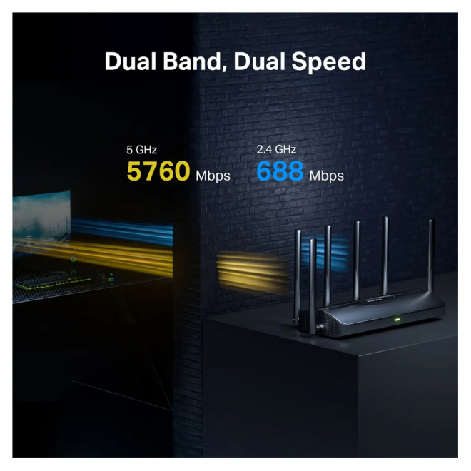 • Fast 6.5 Gbps Mbps Dual Band Speeds: Enables your devices to run at full speed. Enjoy fluent 4K/8K streaming, immersive AR/VR gaming, and blazing-fast downloads