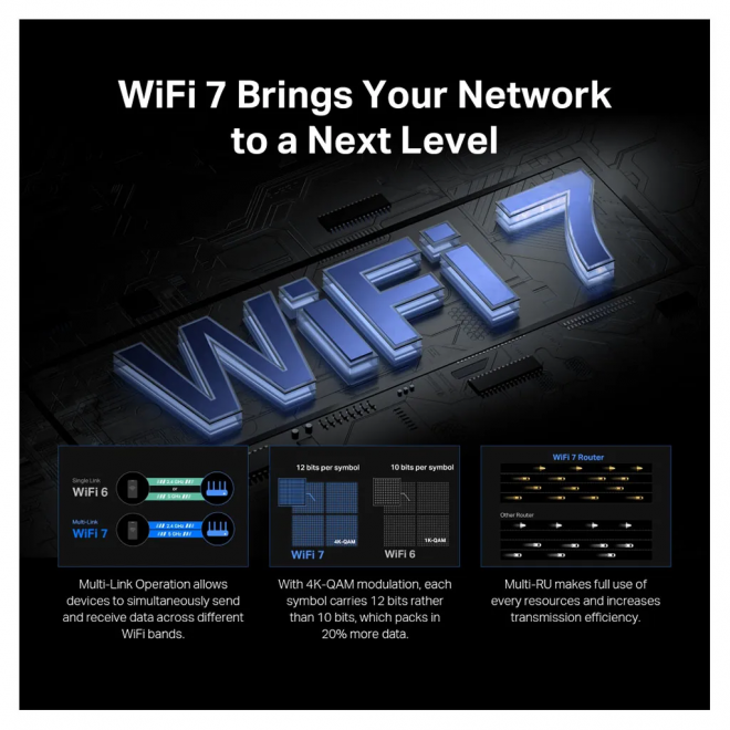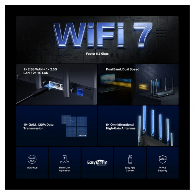 • Newest Wi-Fi 7: Armed with the 160 MHz channels, 4K-QAM, MLO, and other features that Wi-Fi 7 offers, your network will arrive with a jaw-dropping performance