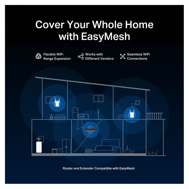• EasyMesh-Compatible: Works with EasyMesh routers and range extenders to form seamless whole home Mesh Wi-Fi, preventing drops and lag when moving between signals