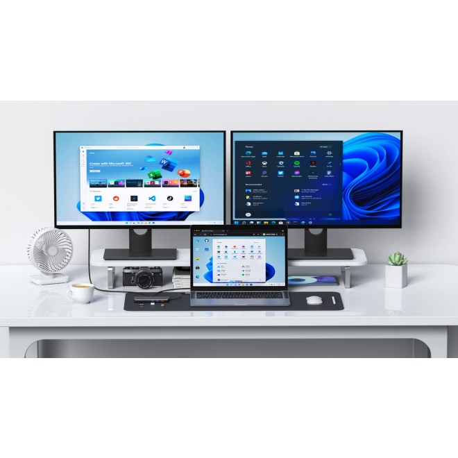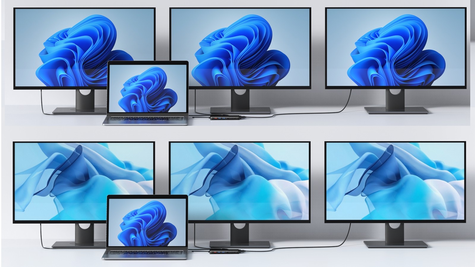 The Dock supports a single monitor with up to 4K resolution when using one of the HDMI ports. It can also support three monitors simultaneously with up to 1080p FULL HD resolution when both HDMI and VGA outputs are used together.